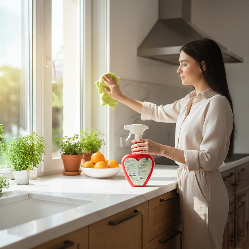 Doğal içerikli formülü sayesinde yüzeylerdeki kir, yağ ve lekeleri kolayca çözerken, Aloe Vera özleriyle yumuşak bir parlaklık ve hoş bir koku bırakır.