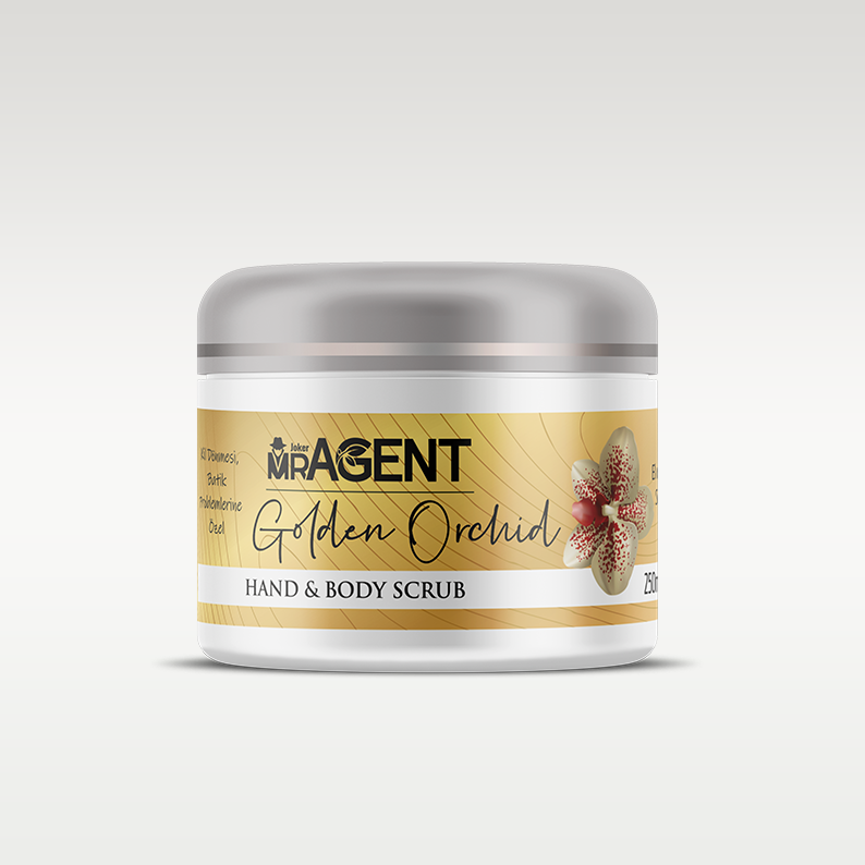 MR JOKER AGENT Golden Orchid Body Scrub, altın orkide çiçeğinin büyüleyici kokusunu ve yenileyici etkisini cildinizle buluşturur. Zengin granüllü yapısı sayesinde cildinizi ölü hücrelerden arındırır, daha pürüzsüz ve canlı bir görünüm kazandırır. Doğal yağlarla desteklenen özel formülü, peeling sonrası cildin nem dengesini korur ve ipeksi bir his bırakır. Düzenli kullanımda cilt daha parlak, taze ve sağlıklı görünür.